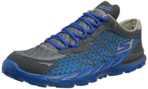 Take your love of natural running to the max in the Skechers GObionic Trail sneaker. This zero-drop, ultra-minimal performance men's running shoe features a construction design developed using advanced biomechanic innovations inspired by the human body; 18 Bio-Responsive ResalyteTM cushioning zones added to key flex points of the foot deliver protection without compromising responsiveness, while a lightly padded collar and tongue ensure comfort and personalized fit. The exoFit mesh and synthetic upper reacts and moves like a second skin, surrounding the foot with supportive and breathable materials. Skechers M-Strike TechnologyTM encourages a midfoot strike, while the ResagripTM shock-absorbing midsole and GOimpulse outsole of the Skechers GObionic Trail running shoe lend natural responsiveness with just the right amount of protection to your daily workout.