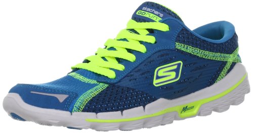 The Skechers GOrun 2 sneaker is ready for serious minimal running action. This women's trainer works as a great transitional shoe to foster a barefoot running experience and features independent circular GOimpulse sensors offer flexibility and feedback for a more responsive running experience; 18 Bio-Responsive ResalyteTM cushioning zones added to key flex points of the foot deliver protection without compromising responsiveness, while a lightly padded collar and tongue ensure comfort and personalized fit. The flexible mesh and synthetic upper reacts and moves like a second skin, surrounding the foot with supportive and breathable materials. Skechers M-Strike TechnologyTM encourages a midfoot strike, while the ResagripTM shock-absorbing midsole and GOimpulse outsole of the Skechers GObionic Ride running shoe lend natural responsiveness with just the right amount of protection to your daily hike.